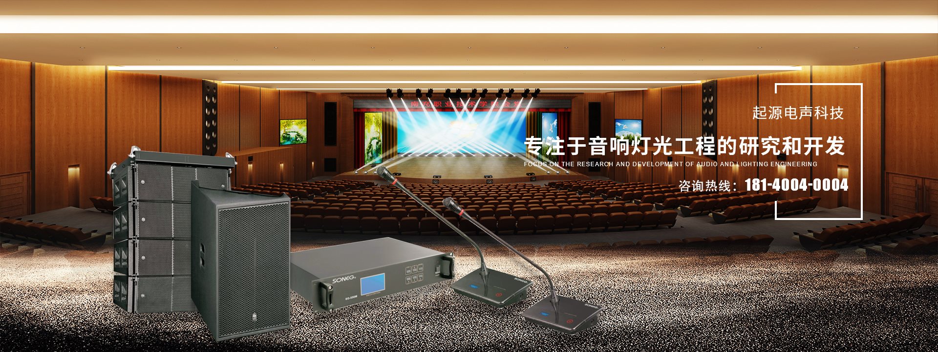 起源電聲科技專(zhuān)注于音響燈光工程的研究和開(kāi)發(fā),承接大型舞臺(tái)燈光音響系統(tǒng)、智能化會(huì)議音響系統(tǒng)、KTV音響工程、家庭影院、廣播工程